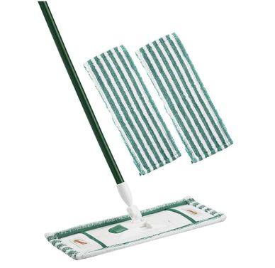 This size and style mop works great for damp-wiping walls and floors with Rubbermaid disposable cloths or dry wiping walls and floors with electrostatic sweeping cloths.