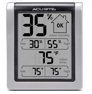 Portable hygrometers are used to assess our indoor humidity levels so that we can intervene if our humidity is high enough to support microbial growth in our homes. This one in particular is nice because in addition to the real time reading it gives you a 24-hour high and low for better monitoring.