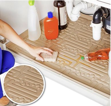 Another must-have for the CIRS patient! Sinks are one of the most common places for a leak, and they can often go undetected for quite as while as the moisture seeps into the material of the bottom shelf and to the subfloor below. These mats have about a 1" lip and enough surface area to hold about a gallon of water before overflowing. Place a leak detector on top!